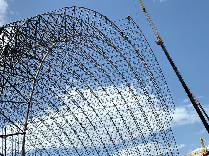 (2)网架加工前应对现场尺寸进行复测,确认无误后方可进行加工、安装;网架制作、运输、安装应遵守《空间网格结构技术规程》JGJ7-2010、《钢网架孝义螺栓球节点》JG/T 10-2009、《钢网架孝义螺栓球节点用高强度螺栓》 GB/T 16939-2016、《孝义钢结构孝义工程孝义施工规范》 GB50755-2012、《孝义钢结构孝义工程孝义施工质量验收标准》 GB50205-2020。